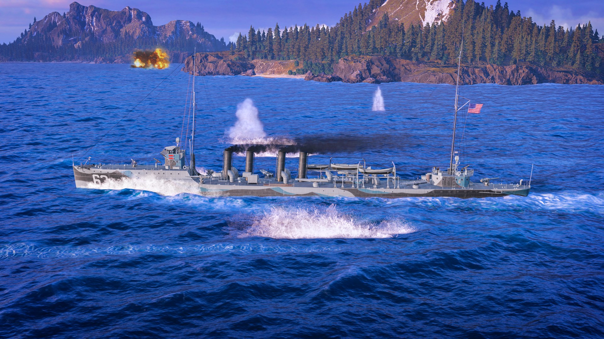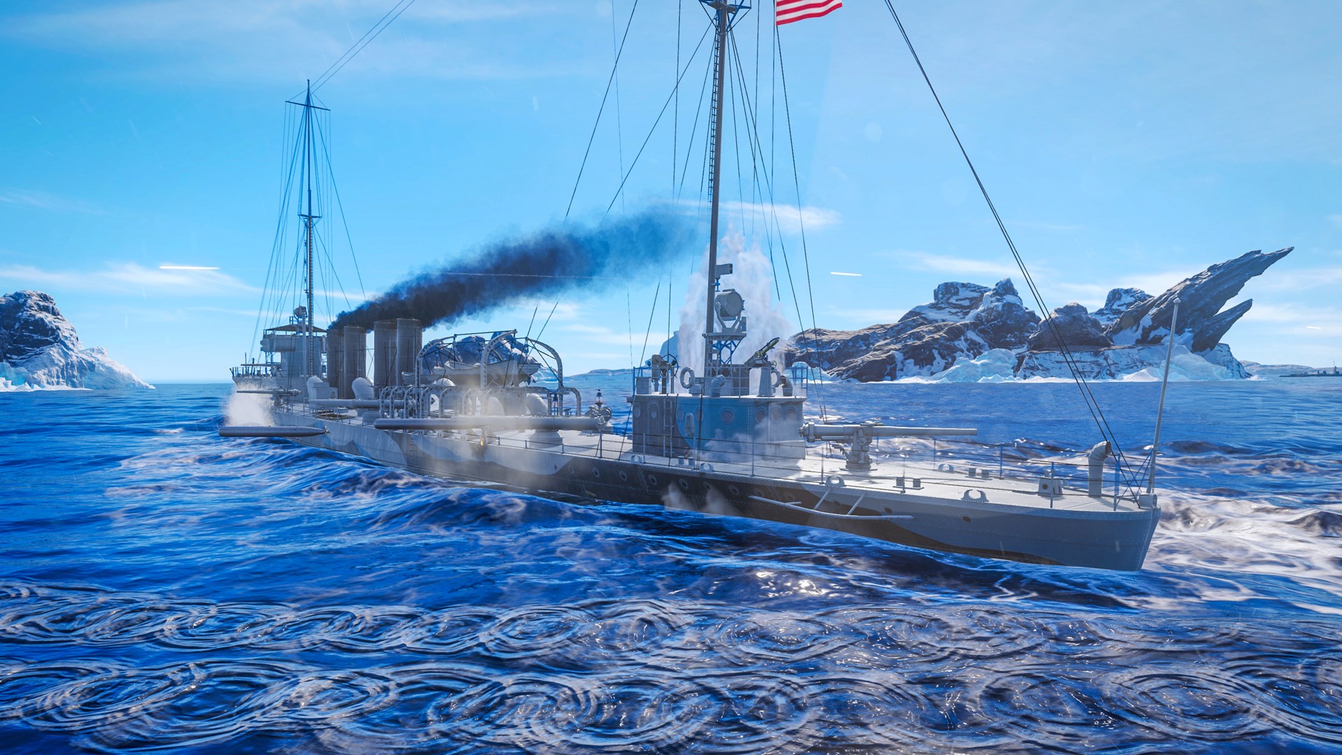 Setzen Sie die Segel am Steuer des frühen US-Zerstörers Sampson! Außerdem kommt sie mit vielen amerikanischen Tarnungen und seltenen Boostern!